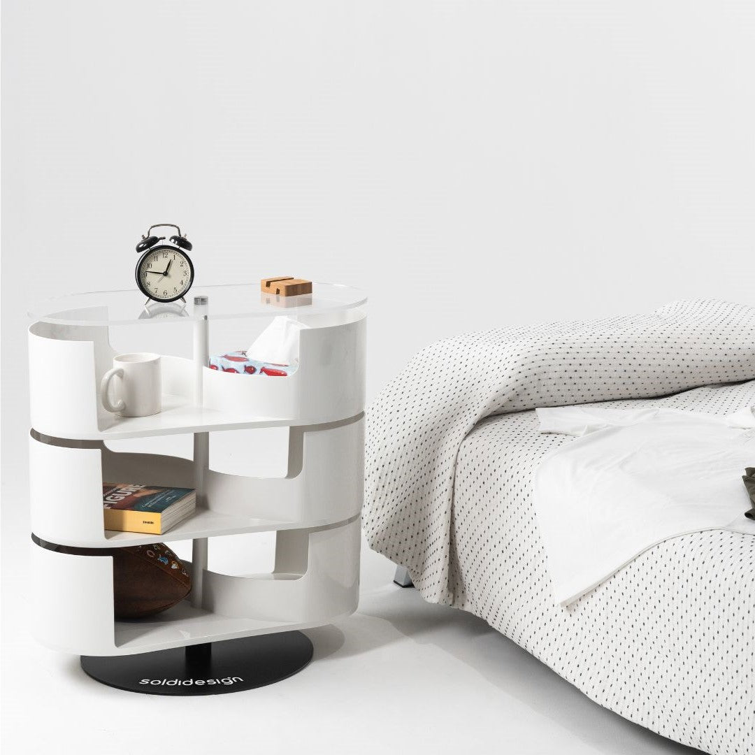 Infinity Table White fügt der Funktionalität und Eleganz des drehbaren Designs von Infinity eine neue Dimension hinzu. Ein Möbelstück, das Ästhetik und Funktionalität mit seiner Unterlage aus recyceltem Plexiglas verbindet und Ordnung und Harmonie in jeden Raum bringt. Im Schlafzimmer, im Eingangsbereich oder in Ihrem Wohnzimmer wird Infinity Side zum Detail, das den Unterschied ausmacht.