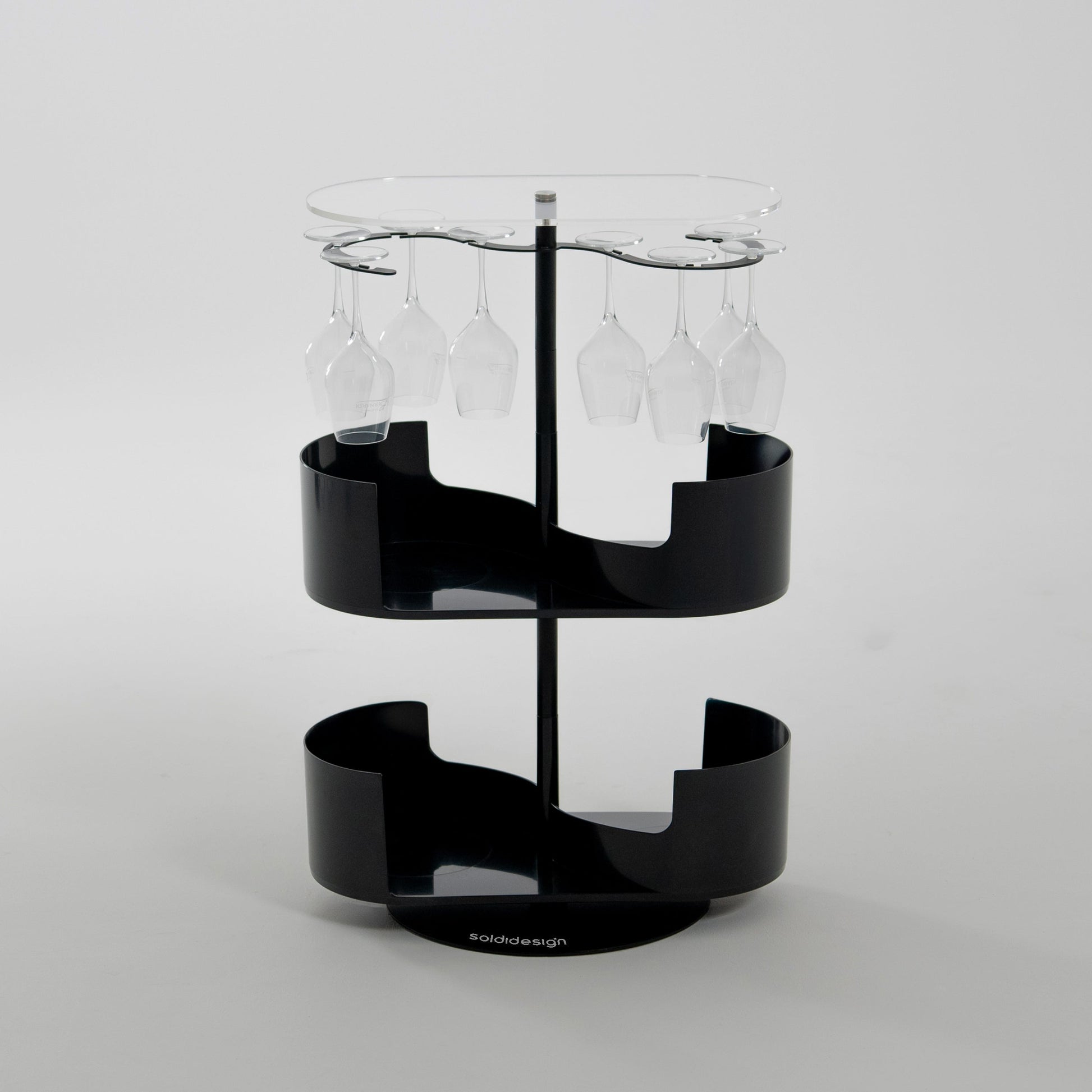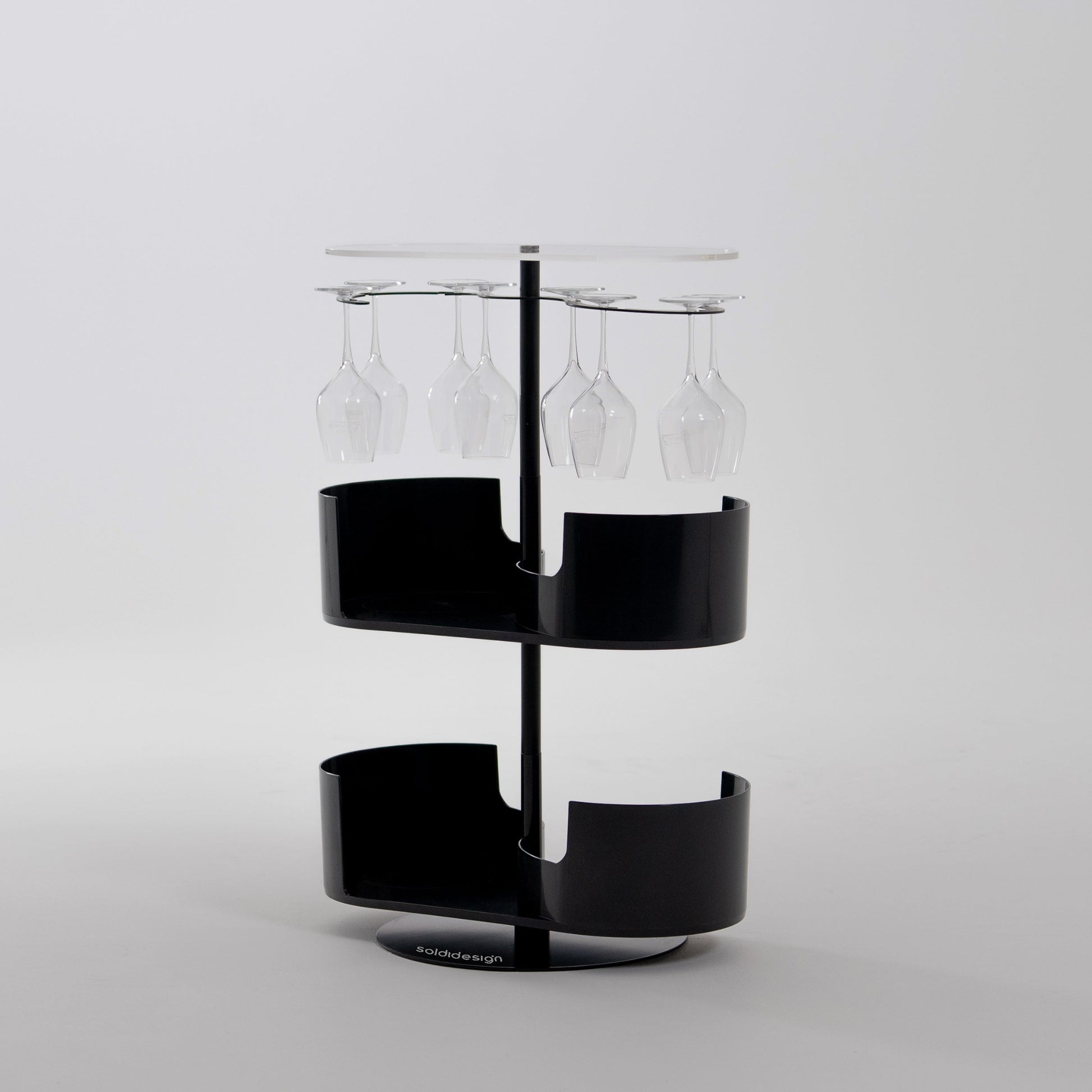Infinity Bar è un mobile bar multifunzione pensato per contenere fino a sei calici nella struttura dedicata e per ospitare bottiglie, shaker e accessori. La sua struttura girevole ti consente di organizzare e accedere facilmente a tutto ciò che usi quotidianamente.