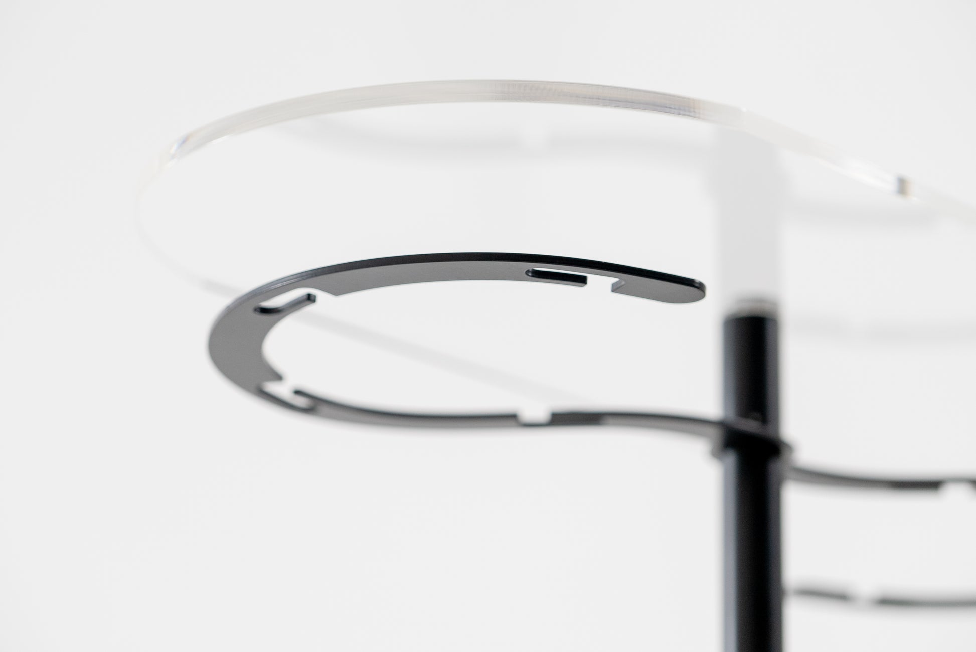 Il piano d’appoggio superiore è fisso, per garantire stabilità a qualsiasi oggetto che venga posizionato. I ripiani inferiori, invece, ruotano a 360° per offrire il massimo della comodità organizzativa