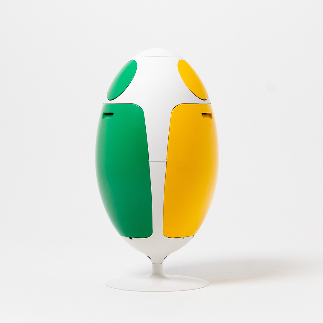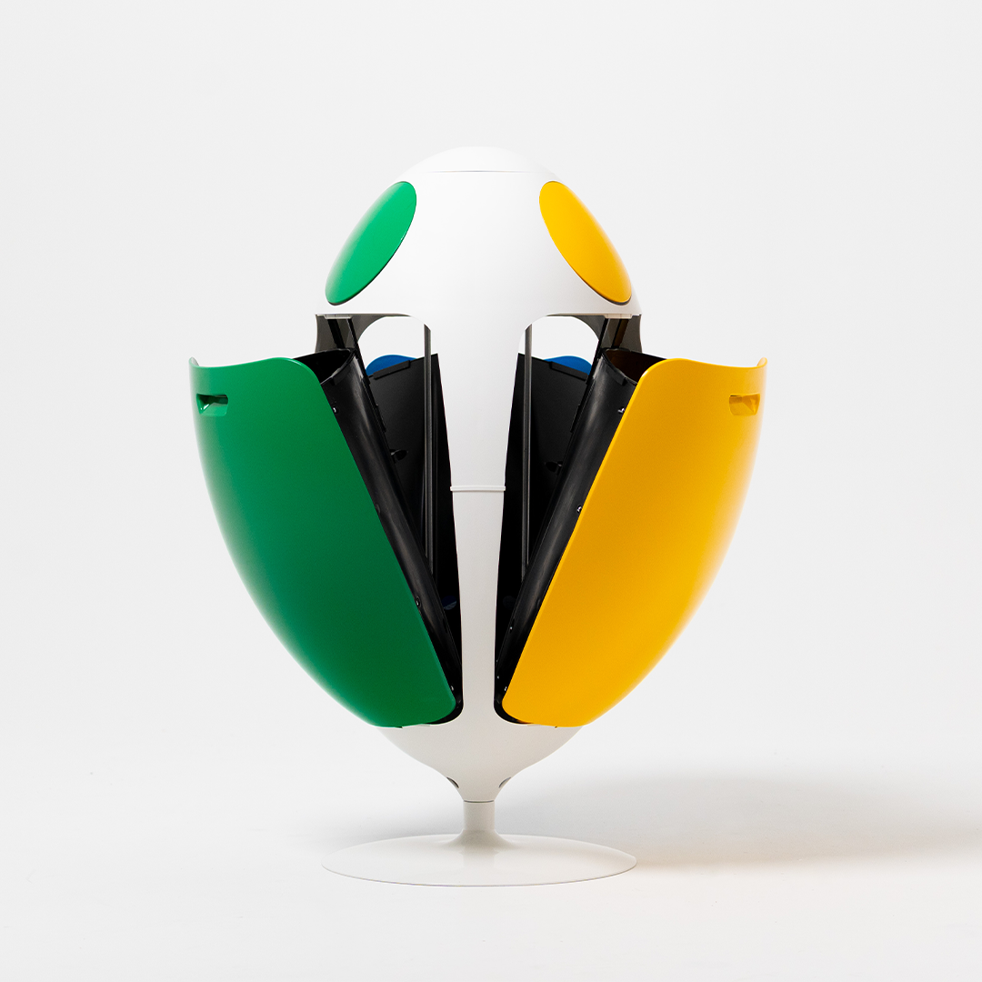 Ovetto ABS Amico è una pattumiera di design 100% Made in Italy, realizzata con plastica riciclata e progettata per durare fino a 10 anni. Dotata di tre vani per la raccolta differenziata, include in cima un compattatore per bottiglie e lattine. La sua iconica forma a uovo e la base girevole consentono di ottimizzare lo spazio e garantire la massima praticità.