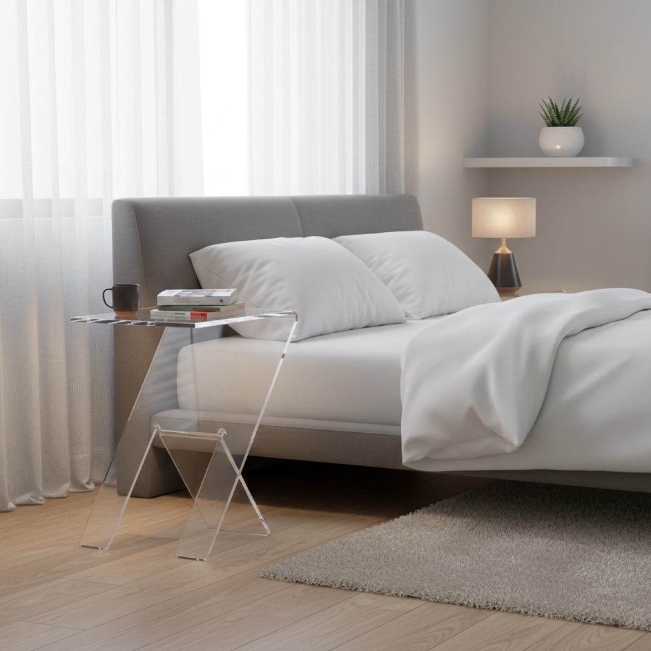 Zylhos nasce dalla purezza del plexiglass trasparente e dalla forza del gesto creativo: un’unica lastra che si piega, prende ritmo e diventa design. La sua silhouette a “Z”, essenziale e fluida, porta nei tuoi spazi un equilibrio fatto di leggerezza e funzionalità. Perfetto accanto al divano, alla poltrona o come comodino minimale, Zylhos si integra senza mai invadere, lasciando passare luce, ordine e movimento.